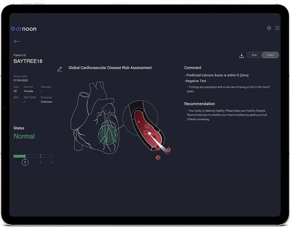 With AI-powered precision and reliability, Dr. Noon helps detect retinal disease and assess cardiovascular risk before symptoms appear. It helps improve patient outcomes. Built to work with existing fundus cameras, Dr. Noon is designed for fast adoption in everyday practice.