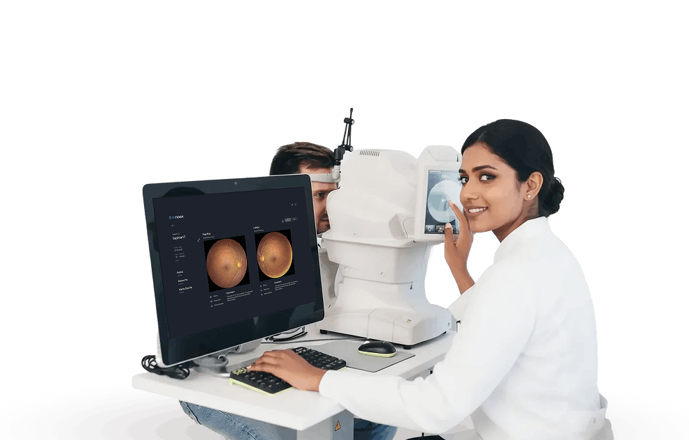 Eye care professionals already have the right moment, the routine eye exam. The fundus scan you already capture becomes more than a retinal image.